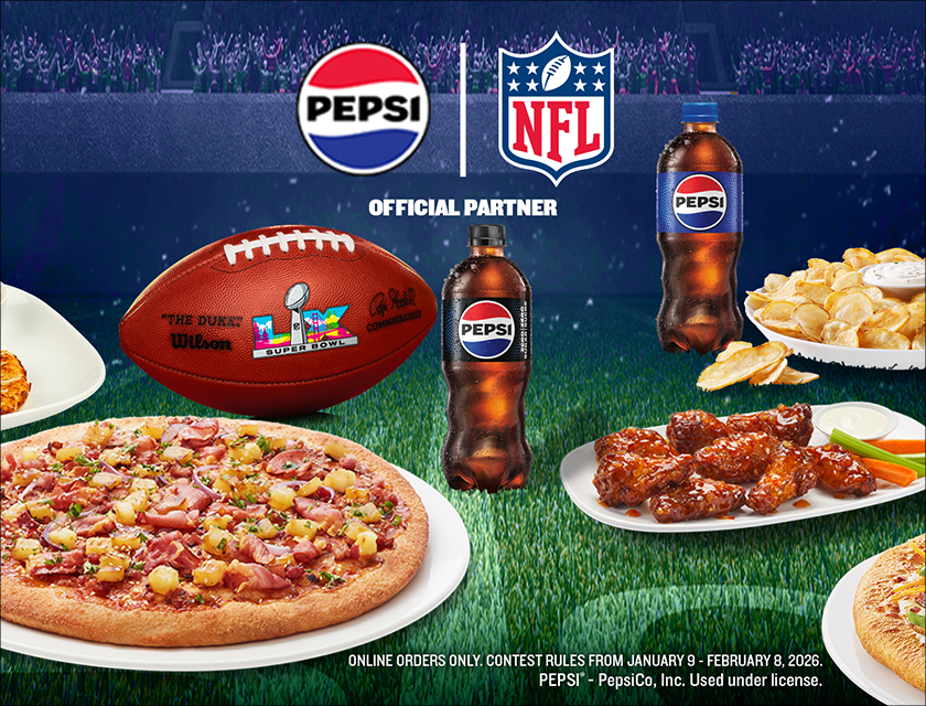 Whether it's a single can, bottle or pack of Pepsi® products, you will be automatically entered into the contest. All you need to do is browse our menu, add your favourite Pepsi® product to your Game Day online order, checkout and enjoy your meal!